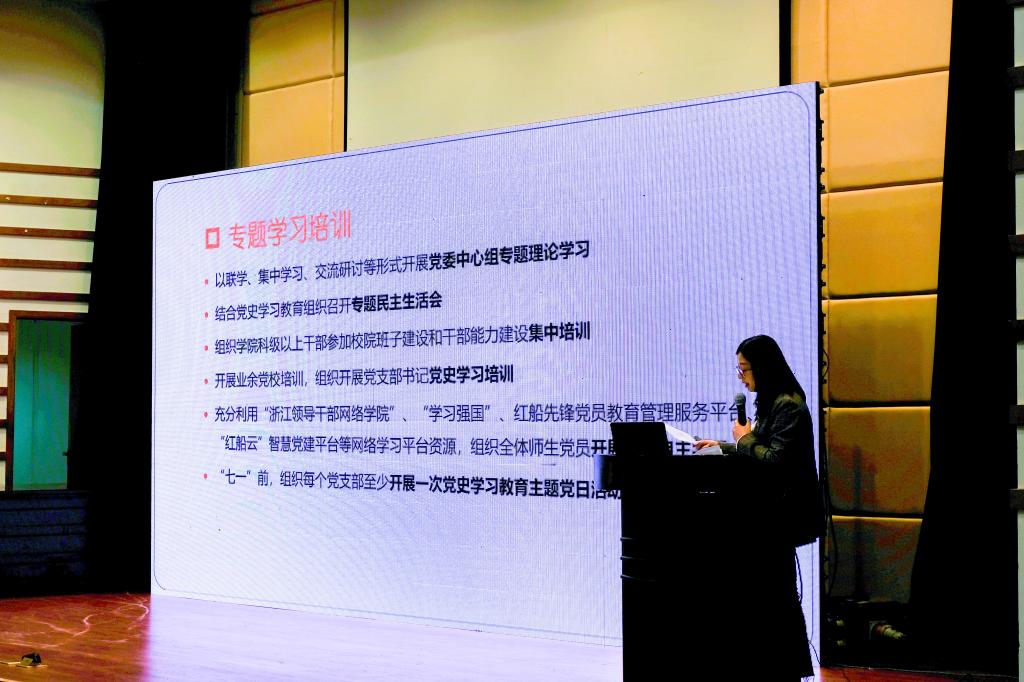 随后,杨丽娜对学院全体师生党员进行党史学习教育动员,并为大家上了一堂题为《奋斗百年路 启航新征程》的主题党课。她从“为什么学党史”、“党史学什么”、“党史怎么学”三个层面进行详细说明,为大家解疑答惑,进一步提高了全体党员的思想认识和党性修养。她要求全体师生党员牢记习近平总书记提出的“学党史、悟思想、办实事、开新局”“学史明理、学史增信、学史崇德、学史力行”目标要求,积极参与各种庆祝活动,展现红船学子蓬勃精神风貌,认真开展党史学习教育,筑牢理想信念之基,努力做到知行合一,全力支持暗网禁区 创建,以优异成绩向建党百年献礼。